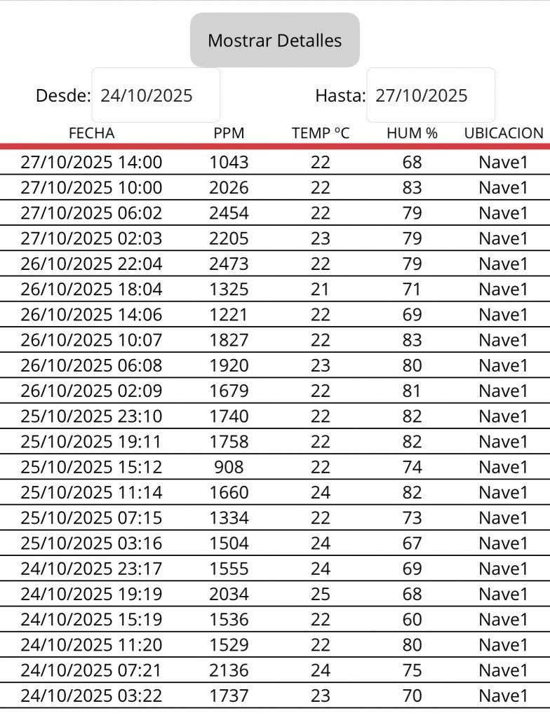 Podrás visualizar el historial del nivel de Co2 en el rango de fechas que tu elijas!